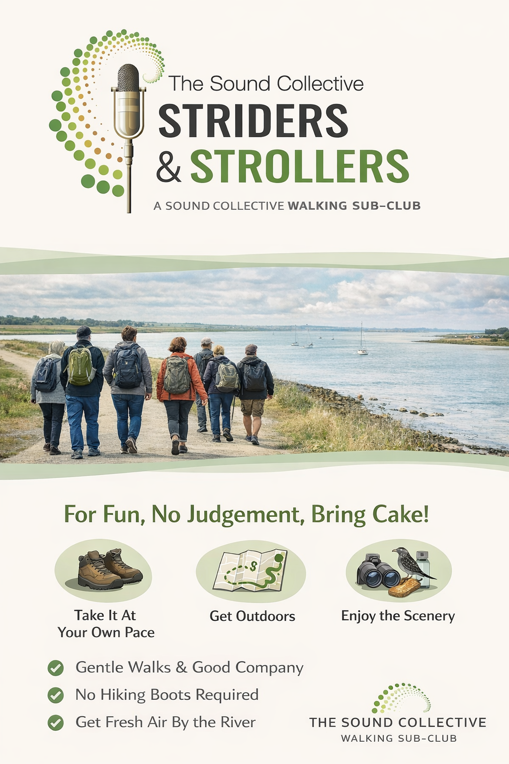 WALKING GROUP: Anyone can suggest a walk at any time. Simply post the route, the date, and say if it’ll be a gentle walk, a medium level stroll, or a faster paced stride aimed at clocking up steps and maintaining a pace. Separately, group Dog walks can also be organised from this a friendly FB page