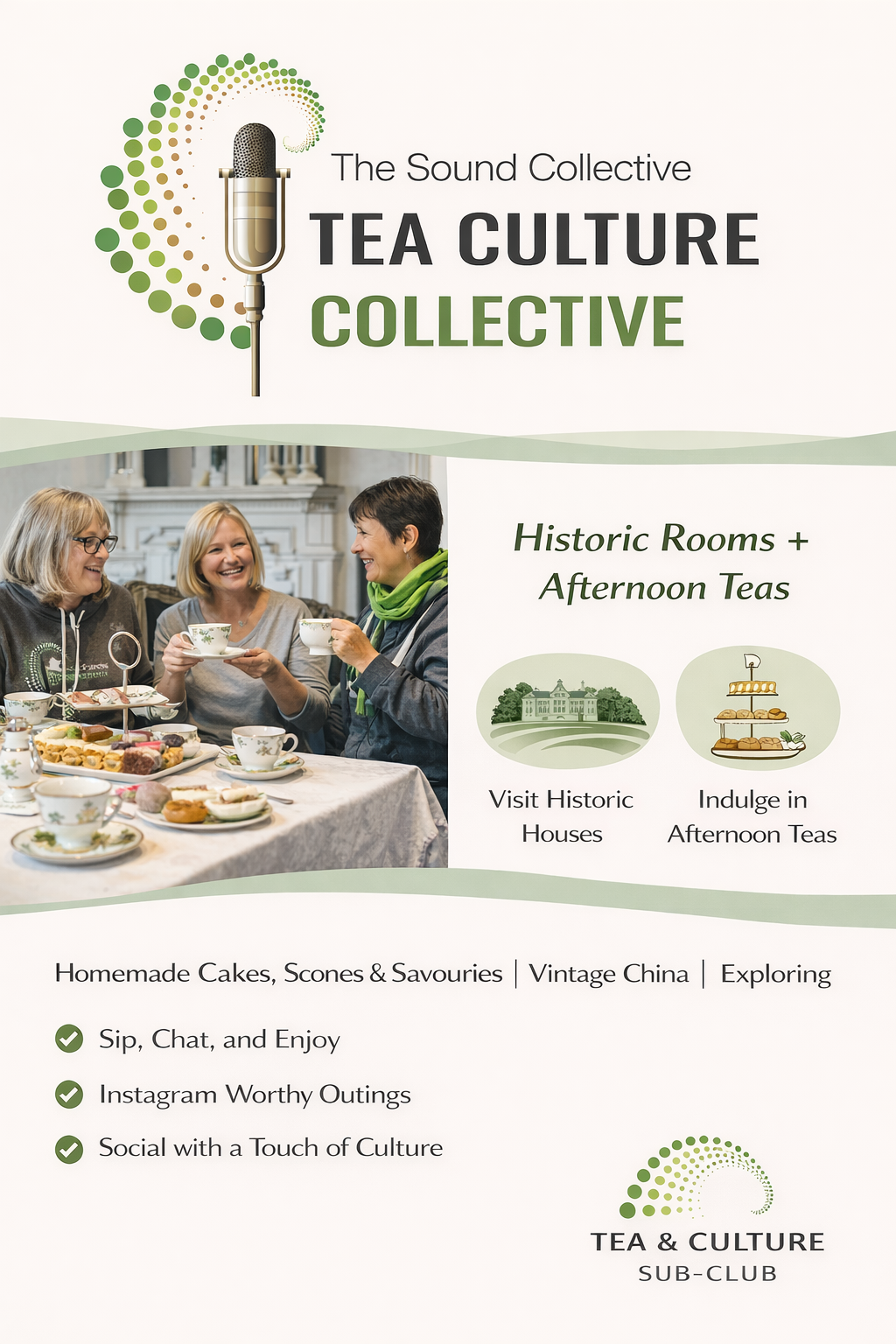 TEA, CAKE & CULTURE: Sounds highbrow but actually these are days out at lovely places and a chance to eat scones and debate cream first then jam or jam first then cream! What’s not to love! Get on the WhatsApp chat to connect and join in.