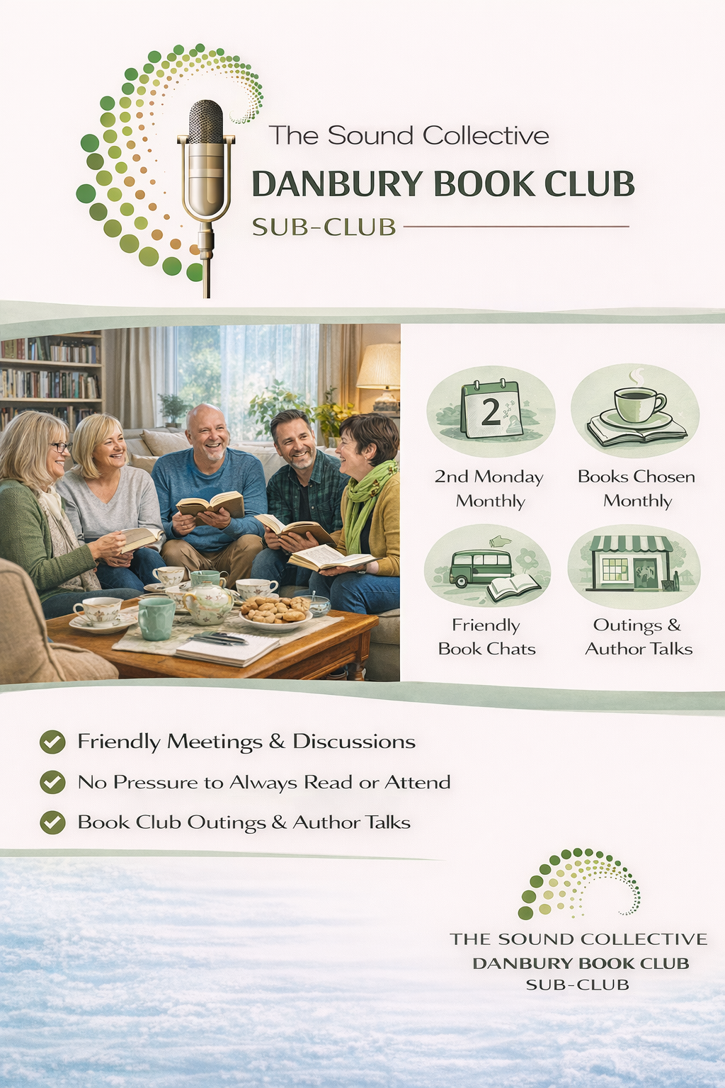 DANBURY BOOK CLUB: Our book club meets monthly. One member puts forward a book for the group to read and then the following month it’s discussed. A vibrant club resulting in lively discussion.